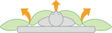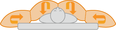 従来のマットレスは身体を点で支えるため、腰や背中などに圧力が集中しやすく、身体への負担が大きくなりがちです。しかし、ブレスエアー®は身体を点ではなく面で支えています。これにより腰や背中に集中する圧力を分散し、正しい姿勢を促すことで身体への負担を軽減します。寝返りのしやすさも特徴です。